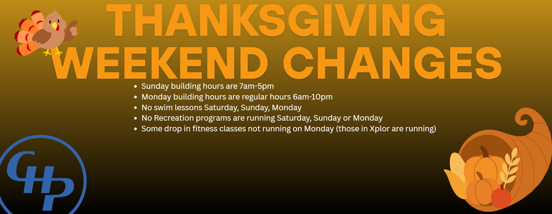 Click to read about schedule and program changes for this coming weekend